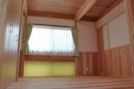 ~蔵屋敷風な家~ 和風がいいけど純和風でもなく古民家風でもない家がいい… そんな発想から生まれたのが蔵屋敷風の家です。 屋根にはしぶい銀色の陶器瓦を使い、玄関入り口のポーチ部分に取付けた木格子が家の顔となっています。 中は、床や天井は無垢の杉の木・柱はひの木・壁は漆喰で仕上げた自然素材の家です。 本物の蔵と同じように、時が経てば経つほど味わいや風合いが増してくる、それが蔵風の家です。