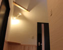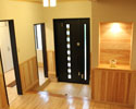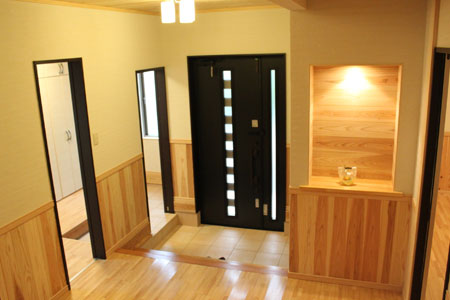 玄関ホールの正面の広いニッチの壁には、2階外壁のサイディングを張っています。