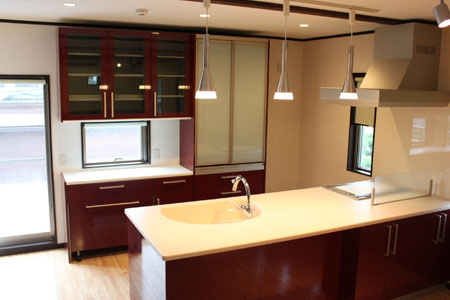 家族が寛ぐLDKは、日当たりの良い2階の南面に設けました。キッチンはお母様のたっての希望で、解放感のあるアイランド型に仕上げました。