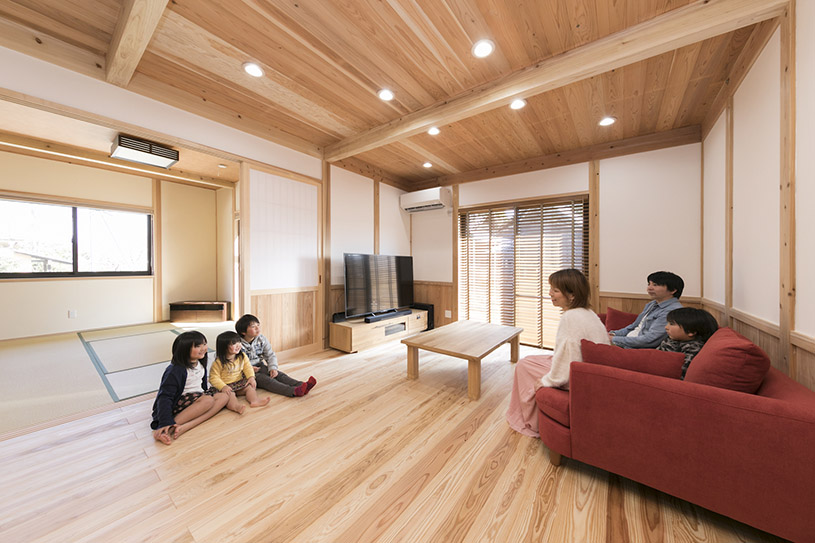 隅々まで大工の匠の技を凝らした空間づくりとともに、家族6人が快適に暮らせる機能を兼ね備えた住まいです。